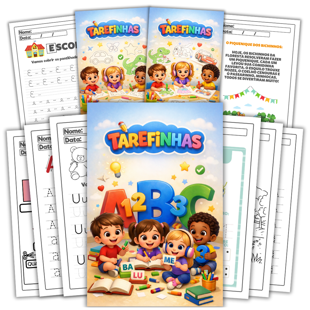 Um kit completo de atividades educativas para alfabetização. Pronto para imprimir, aplicar e encantar pais que querem ensinar de forma leve e prática.